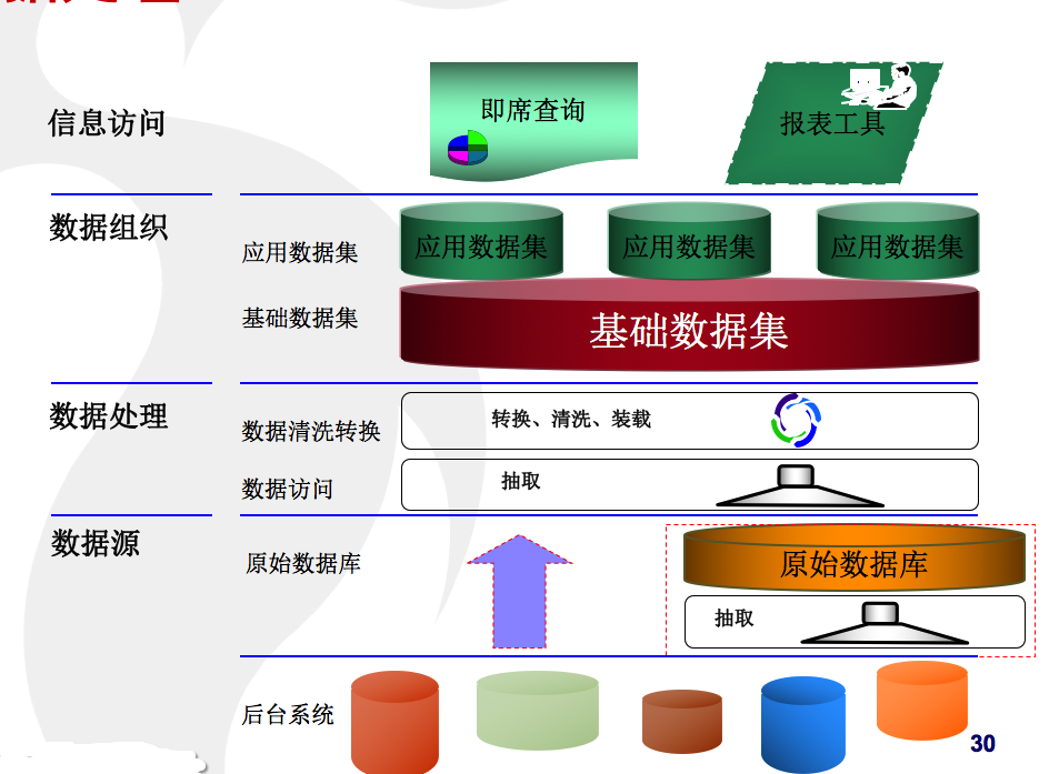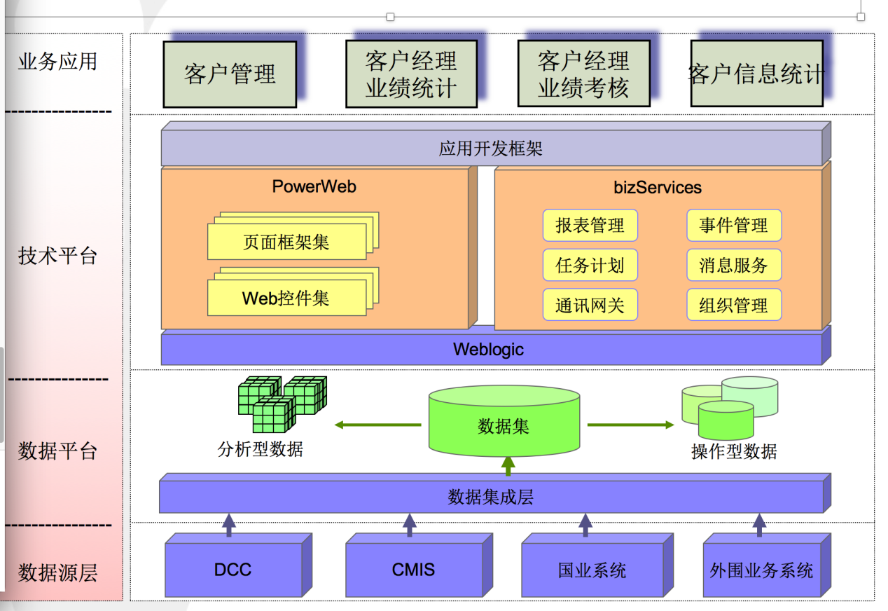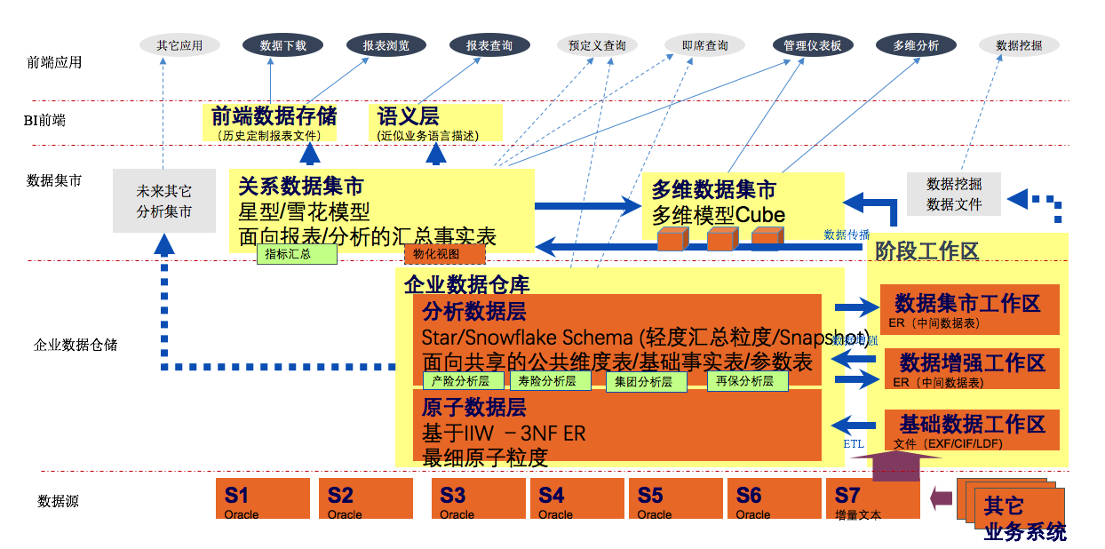 这个是国内某银行的一套数据集市,这是一个典型数据集市的架构模式、面向客户经理部门的考虑分析。