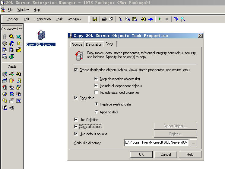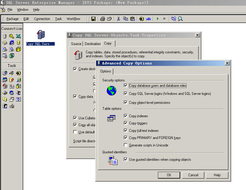 海尔集团的一个 BI 项目,架构的 ETL 使用的是 微软的数据抽取加工工具 DTS,老人使用过微软的 DTS 知道有哪些弊端,后便给出了几个 DTS 的截图。