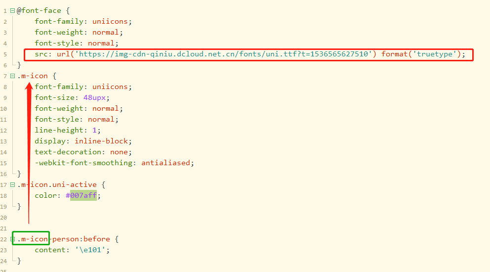 将Unicode只要复制.ttf的那个url 添加到uni-app 项目中添加https