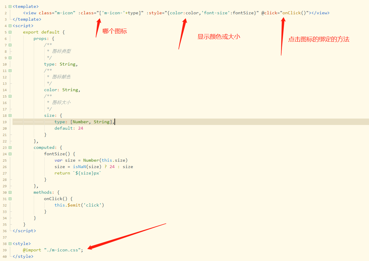1、组件文件m-icon里面有两个文件,一个是m-icon.css文件一个是m-icon.vue文件