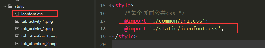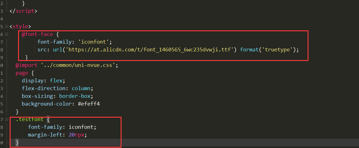 方式二:导入自定义矢量库图标css,css文件可在阿里巴巴矢量图标库下载,在本地使用,如下图