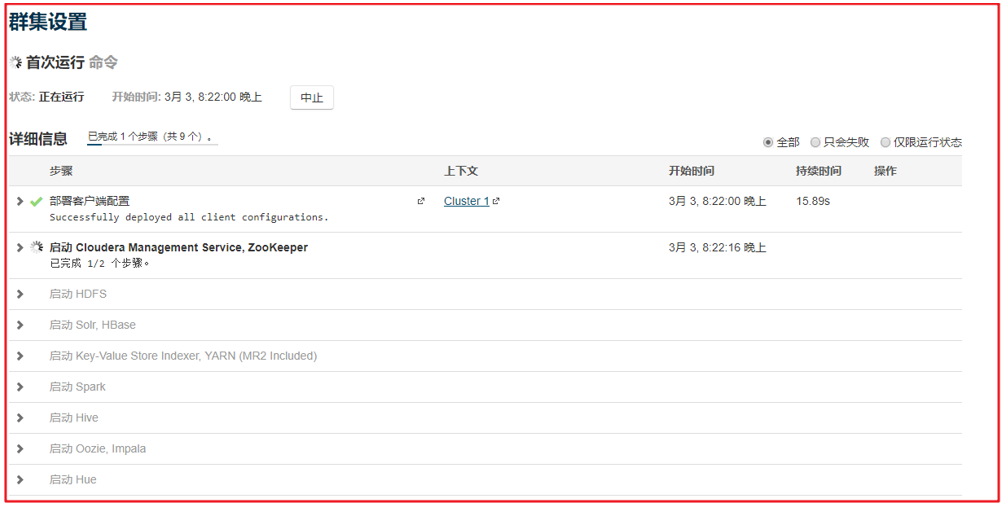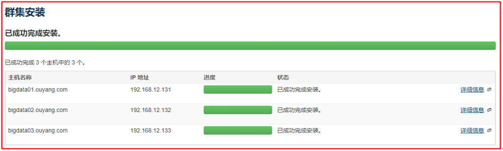 5. 进行集群安装,如果安装失败可以点击详细信息查看失败原因,解决后再重新安装: