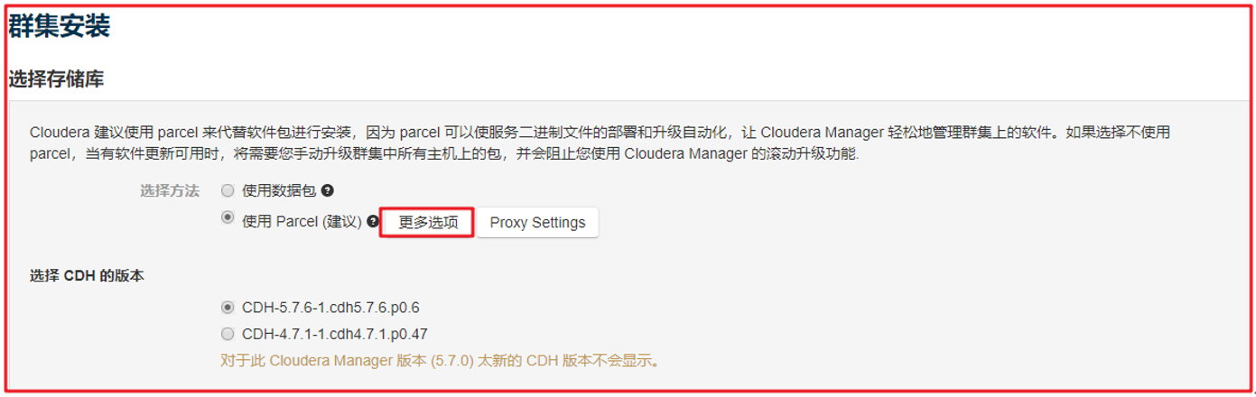 选择CDH的版本,并选择自定义存储库: