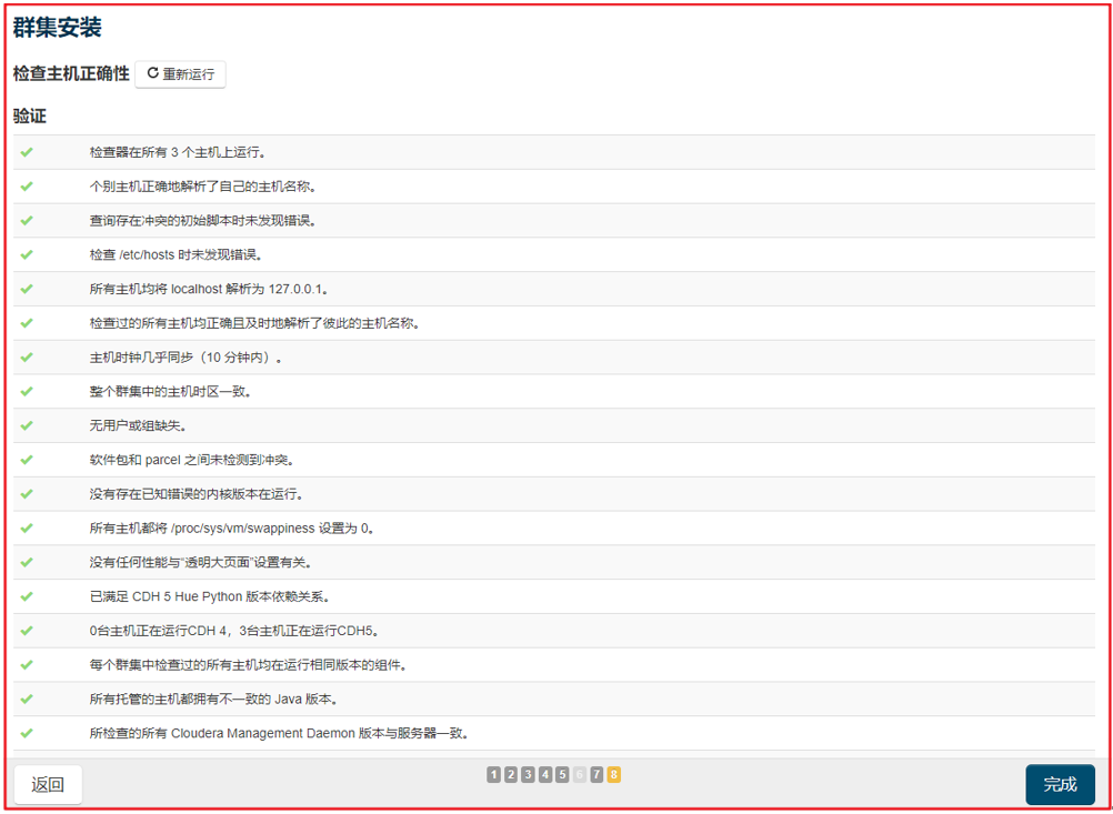 7. 检查主机正确性,一般来说此步会存在swap设置和大页面2个问题,可以使用如下代码在每个主机上进行配置,然后重新检测即可: