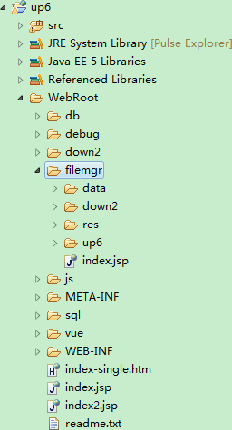 创建一个FileUploadAndDownLoad项目,加入Apache的commons-fileupload文件上传组件的相关Jar包,如下图所示: