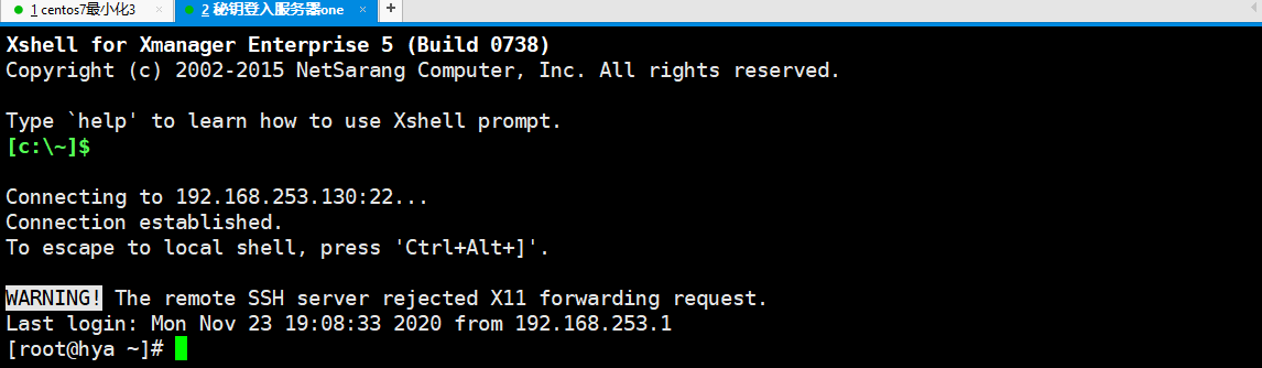 [root@hya .ssh]# ls #注:刚才xshell生成的公钥