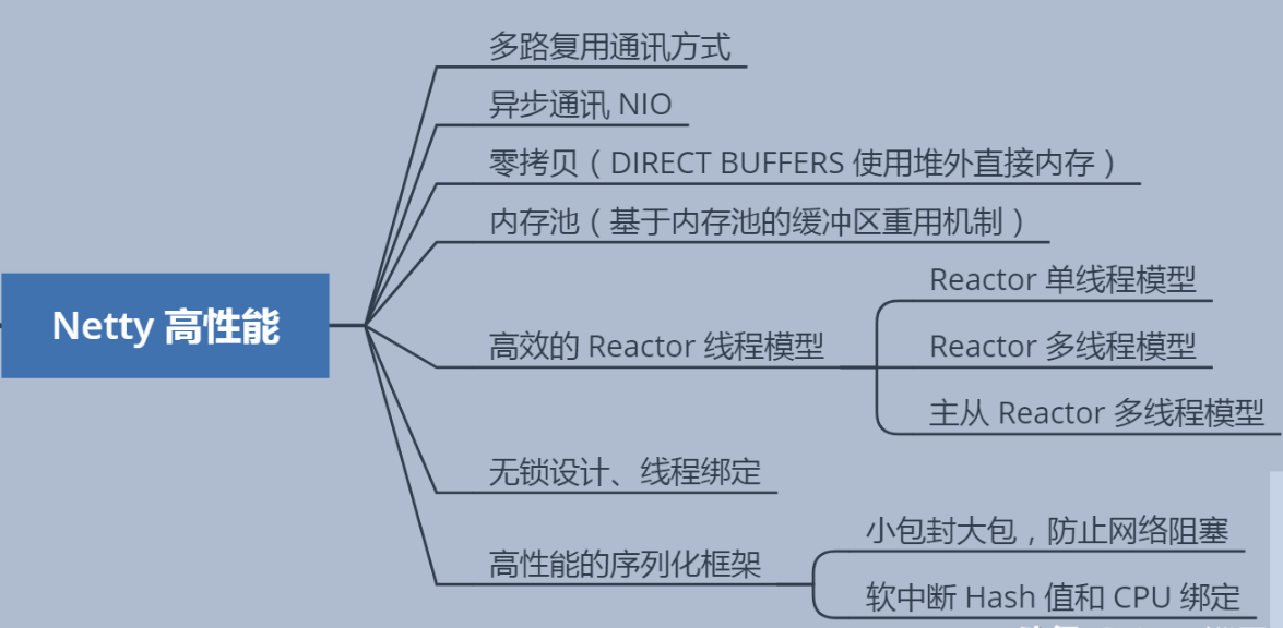 Netty 的 IO 线程 NioEventLoop 由于聚合了多路复用器 Selector,可以同时并发处理成百上千个客户端 Channel,由于读写操作都是非阻塞的,这就可以充分提升 IO 线程的运行效率,避免由于频繁 IO 阻塞导致的线程挂起。