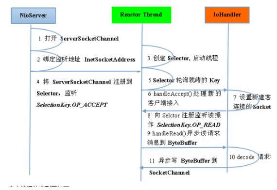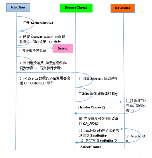 由于 Reactor 模式使用的是异步非阻塞 IO,所有的 IO 操作都不会导致阻塞,理论上一个线程可以独立处理所有 IO 相关的操作。从架构层面看,一个 NIO 线程确实可以完成其承担的职责。例如,通过Acceptor 接收客户端的 TCP 连接请求消息,链路建立成功之后,通过 Dispatch 将对应的 ByteBuffer派发到指定的 Handler 上进行消息解码。用户 Handler 可以通过 NIO 线程将消息发送给客户端。