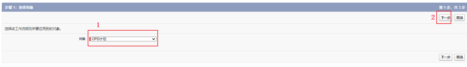 第1步: 选择要为哪个对象创建工作流 ,选好之后点击下一步