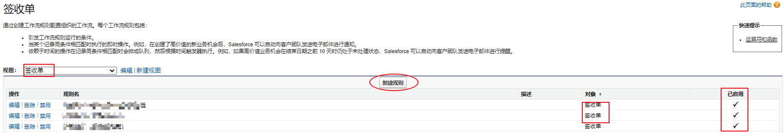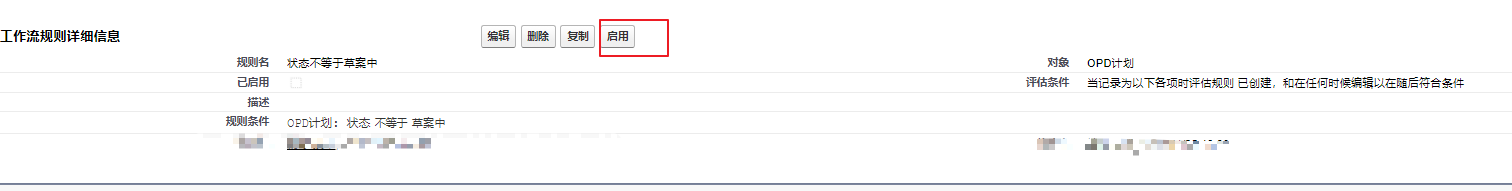 小贴士 : 创建后工作流默认是没启用状态,需要将其置为启用。