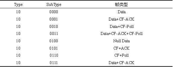 表3 数据帧及相应帧类型