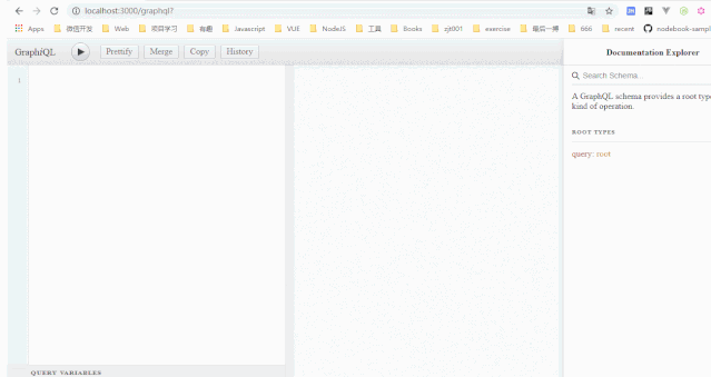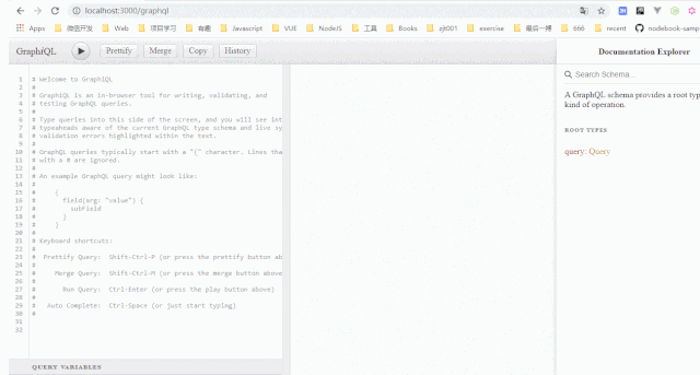 好的,至此我们已完成一个简单的基于graphQL的例子,然后运行node app.js ,我们打开浏览器访问: