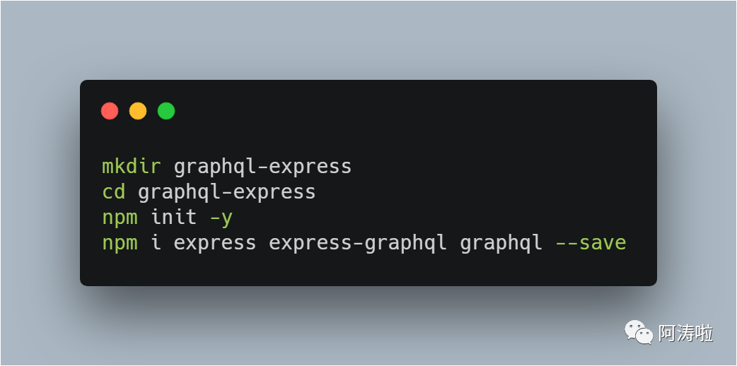 我们先在工作目录创建一个项目文件夹叫graphql-express,之后我们进入到这个项目,随后我们创建一个基于npm管理的项目,然后安装相应的包库。