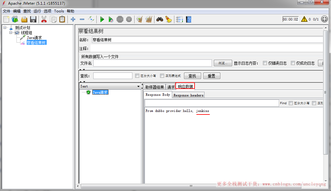 至此,jmeter测试dubbo接口的脚本开发完成。