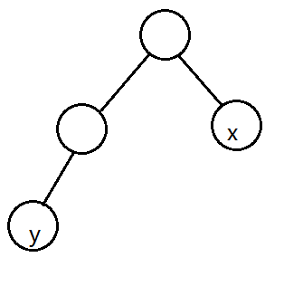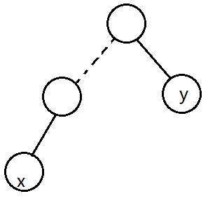 可以发现只有这种情况才会出现 $dfn[x]>dfn[y]$ 的情况,因为如果 $x$ 和 $y$ 在同一层那么显然 $y$ 会更晚被 $dfs$ 到