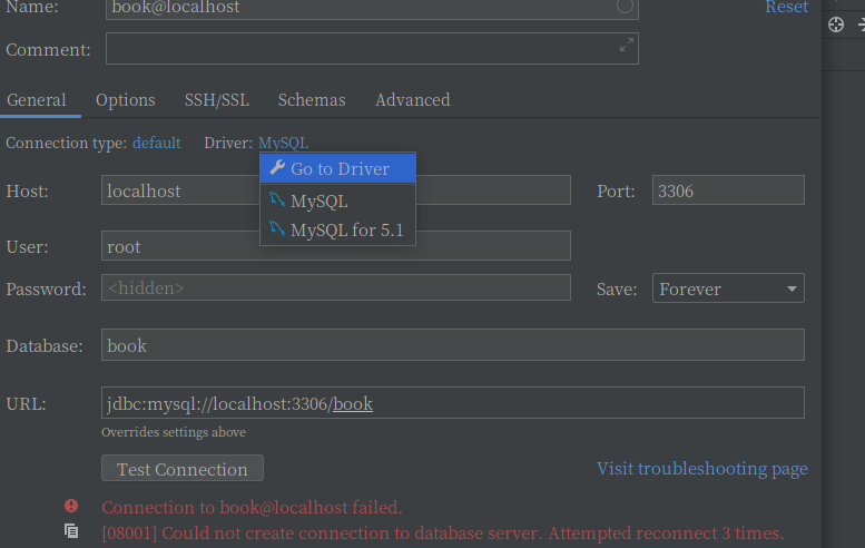 网上找各种博客都说是权限问题,然而我试了之后发现并不是,授予root用户所有权限之后仍然连接不上,我突然想到可能是驱动版本的问题,目前mysql的最新版本是8.0,而驱动的版本也正好是8.0,这之间是不是有什么关联呢。
