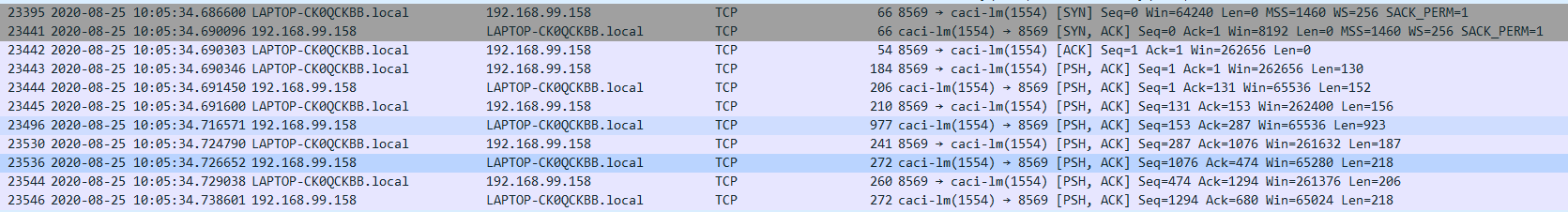 在拉流的时候进行抓包,显示的都是TCP包,没有看到RTSP包。由于拉流端口是1544,所以我们打算从1544的端口包进行分析。