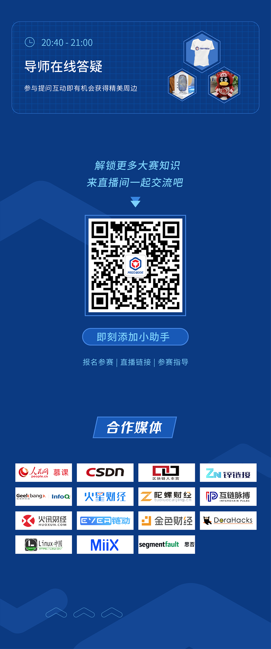 本场是系列培训第二场,将于5月21日19:30分在腾讯课堂等多平台同步直播。为方便获取直播链接,请提前扫描海报二维码添加小助手微信,届时我们将在FISCO BCOS交流群中提醒观看。