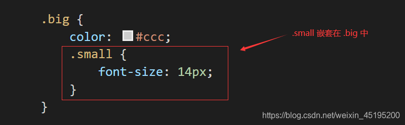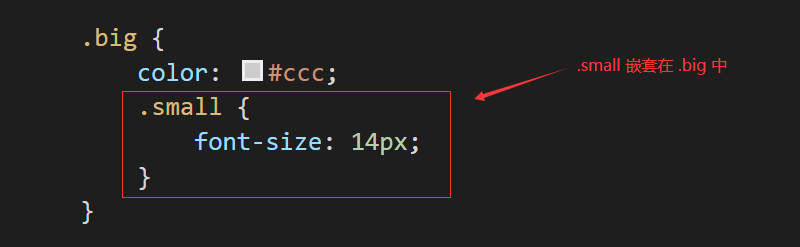 从上图我们可以看到,嵌套的语法其实很简单,相较于 CSS 语言中后代选择器的写法,嵌套规则看起来要直观很多。