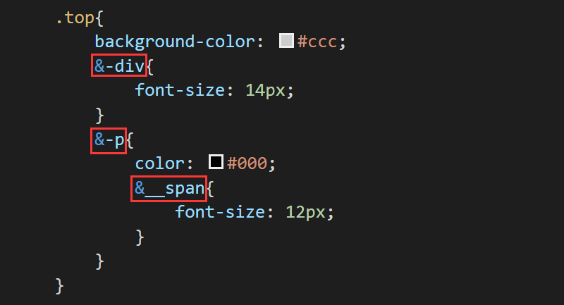在嵌套 CSS 规则时,有时候我们需要直接使用到嵌套外层的父选择器,比如当给某一个元素设定 hover 样式时或者是当 body 元素有个 classname 时,可以用 & 符号来表示嵌套规则外层的父选择器。