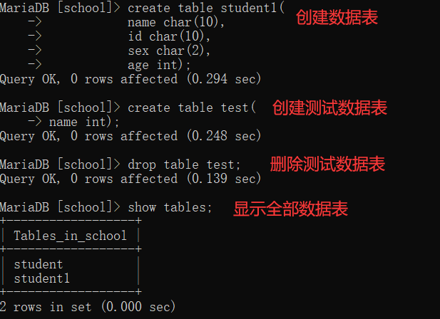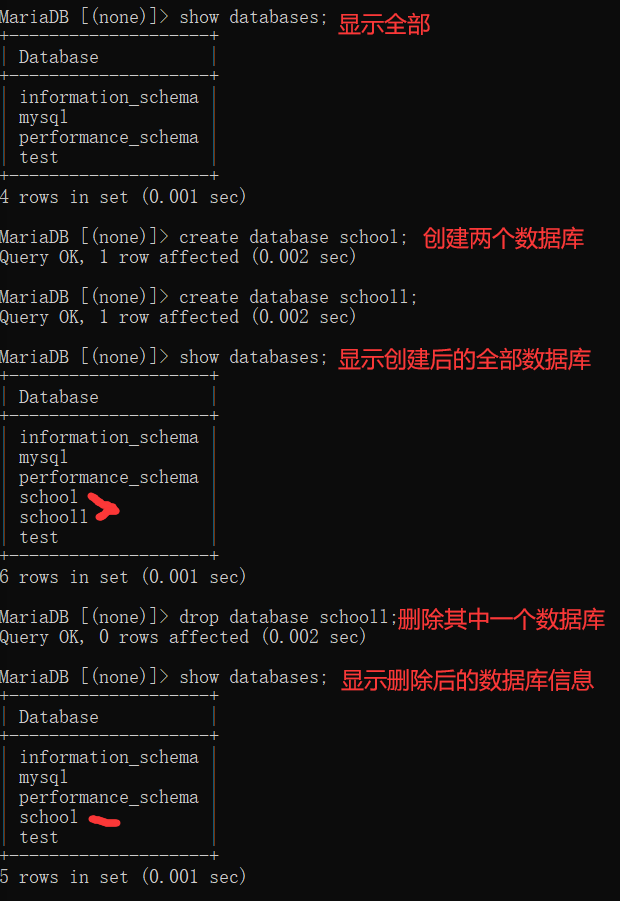 drop database school;
