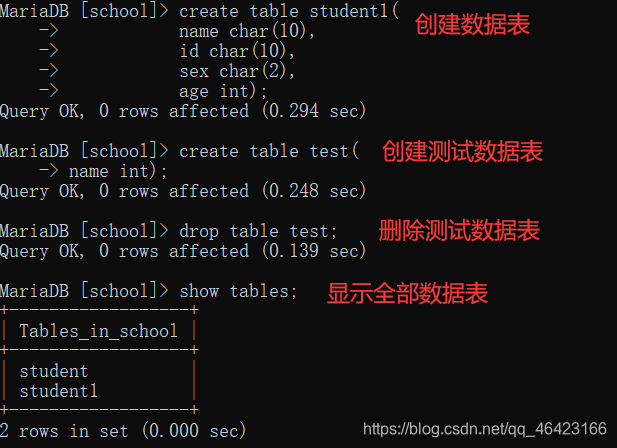 2,删除数据表