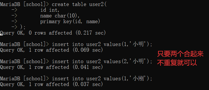 2,联合主键
