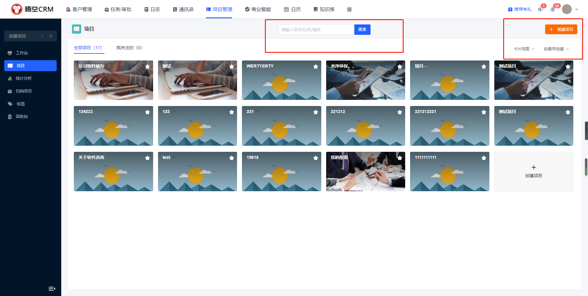 3、项目管理增加全局搜索、工作台搜索、排序筛选,项目新增列表视图,管理项目多样化。