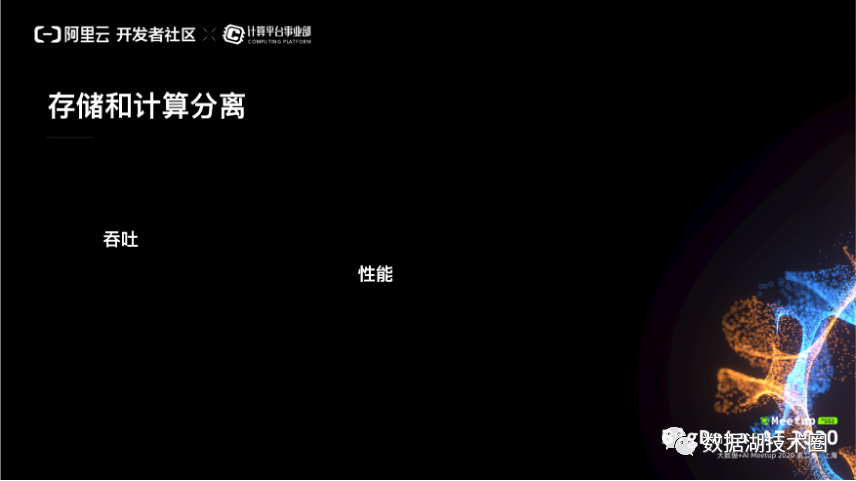 另外一个挑战就是说,按照数据湖的架构,它背后的本质是存储和计算分离。现在是专业化的分工,存储的做存储,计算的做计算,这个带来非常大的研发效率的这样一个提升。但是分离了之后,怎么满足计算的吞吐,怎么满足计算对性能的这样一个需求,这也是带来很大挑战的一个原因。