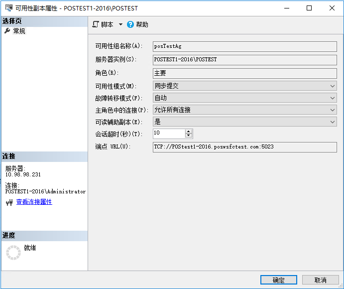 MODIFY REPLICA ON N'POSTEST1-2016\POSTEST' WITH (SECONDARY_ROLE(READ_ONLY_ROUTING_URL = N'TCP://10.98.98.227:1433'))