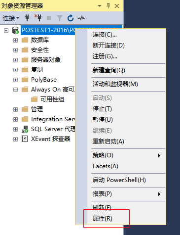 检查,如果 AlwaysOn 启用成功,在服务器属性里可以看到启用HADR为True