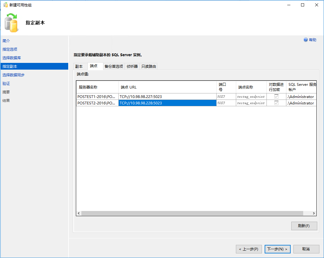 添加副本节点,并勾选自动故障转移,设置辅助副本为可读副本
