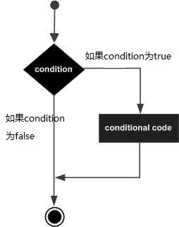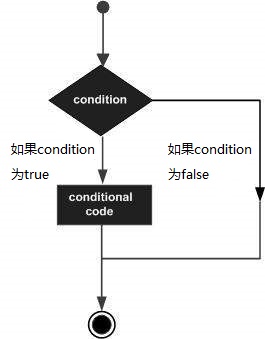 如果布尔表达式(boolean_expression)的计算结果为true,那么将执行if语句中的代码块。 如果布尔表达式(boolean_expression)的计算结果为false,那么将执行if语句结束后(在结束大括号之后)的第一组代码。