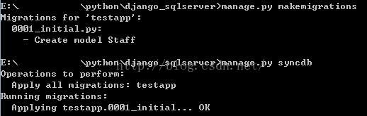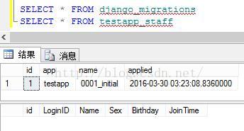 完成后数据库应该有两个表:django_migrations、testapp_staff