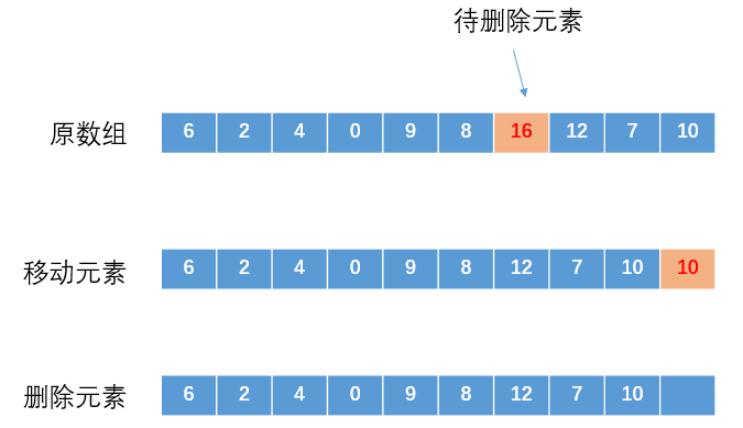 public E remove(int index) { rangeCheck(index); //校验下标是否合法(如果index>size,旧抛出IndexOutOfBoundsException异常) modCount++;//修改list结构,就需要更新这个值 E oldValue = elementData(index); //直接在数组中查找这个值 int numMoved = size - index - 1;//这里计算所需要移动的数目 //如果这个值大于0 说明后续有元素需要左移(size=index+1) //如果是0说明被移除的对象就是最后一位元素(不需要移动别的元素) if (numMoved > 0) //索引index只有的所有元素左移一位 覆盖掉index位置上的元素 System.arraycopy(elementData, index+1, elementData, index, numMoved); //移动之后,原数组中size位置null elementData[--size] = null; // clear to let GC do its work //返回旧值 return oldValue; }//src:源数组 //srcPos:从源数组的srcPos位置处开始移动 //dest:目标数组 //desPos:源数组的srcPos位置处开始移动的元素,这些元素从目标数组的desPos处开始填充 //length:移动源数组的长度 public static native void arraycopy(Object src, int srcPos, Object dest, int destPos, int length); 删除过程如下图所示