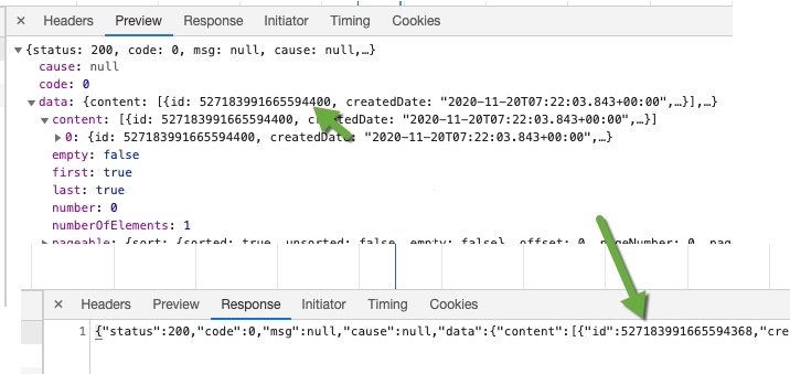 也就是说,一个好好的数字:527183991665594368,经过浏览器一翻译,变成了527183991665594400。