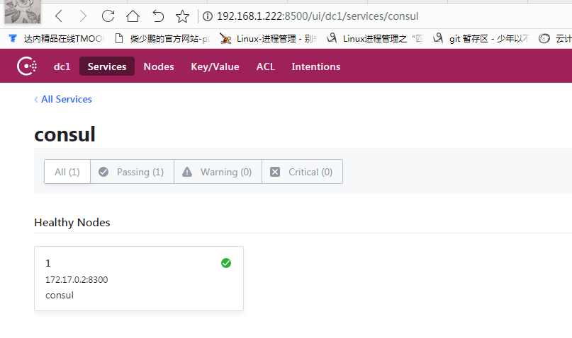 上面命令已经启动了 Consul 和 Web 管理器,我们现在打开 Web 管理器来看一下是否启动成功。通过浏览器浏览