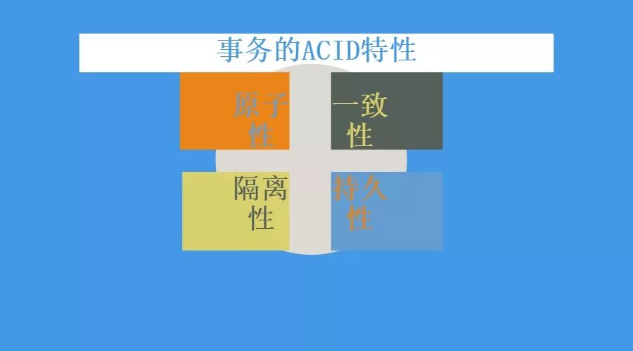数据库管理系统中事务(transaction)的四个特性(即ACID特性、分析时根据首字母缩写依次解释):原子性(Atomicity)、一致性(Consistency)、隔离性(Isolation)、持久性(Durability);