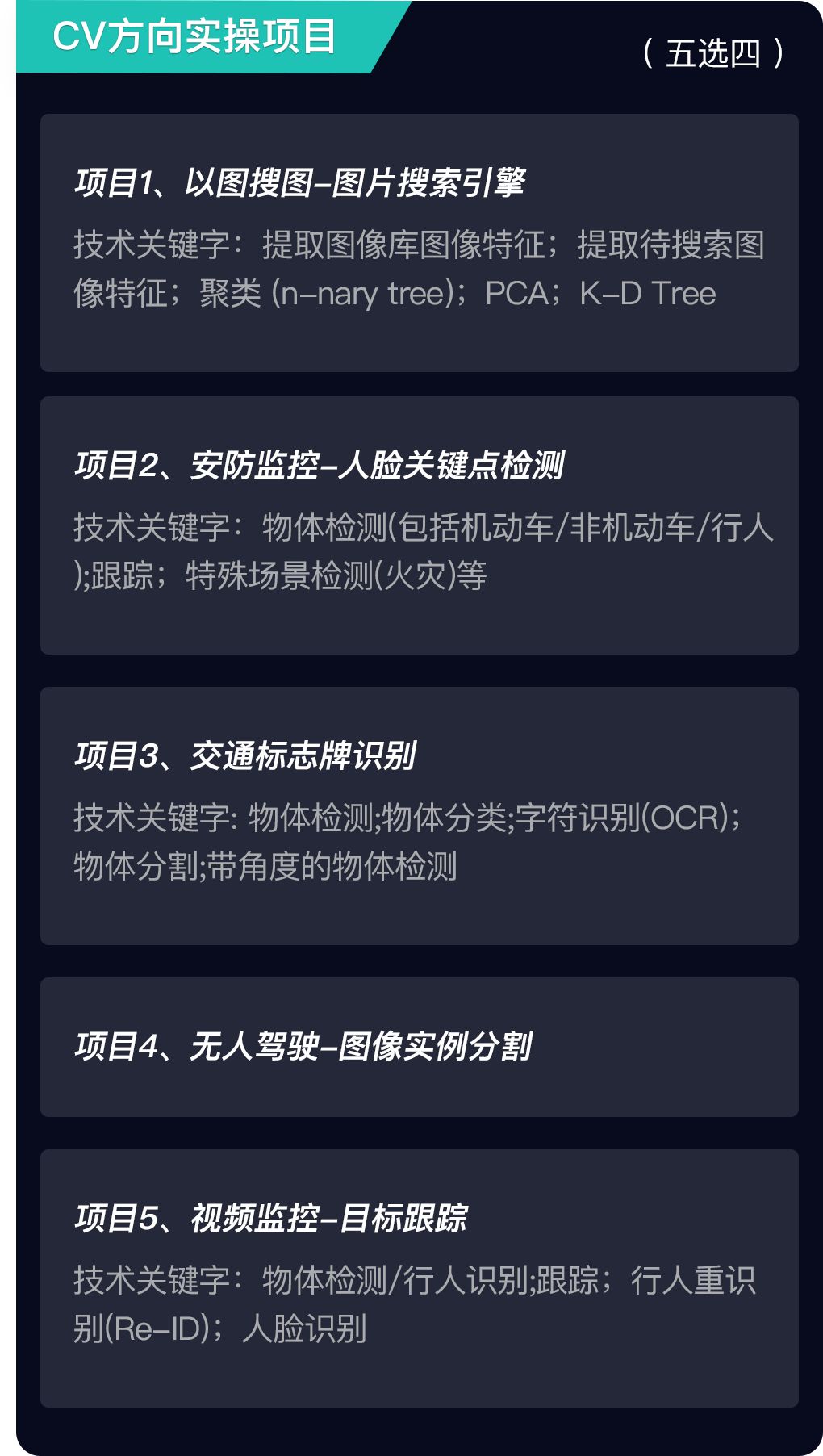 课程组负责为大家提供数据集、项目指导。这些项目均来自于企业的真实项目需求,其数据集和任务要求与企业中的真实水平一致。参与这类项目一方面可以让大家巩固理论知识,另一方面也是大家可以放进简历中极具含金量的项目经历。