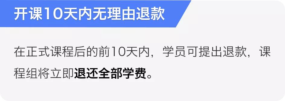 选择课程保过班的同学,报名伊始既签订协议,如果完成课程拿不到 offer 或者初次就业达不到年薪22.5万/本科16.5万(限北上广深杭),则立即全额退款。