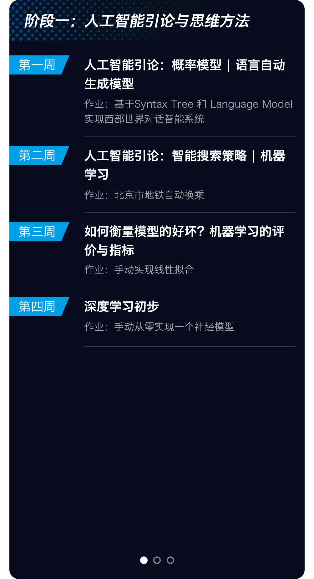 持续自学能力,能够每周至少投入6小时以上(3小时上课,3小时作业和项目),至少持续5个月进行学习;