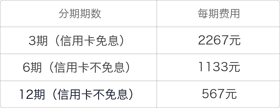 本课程为同学提供 3、6、12 期分期付款