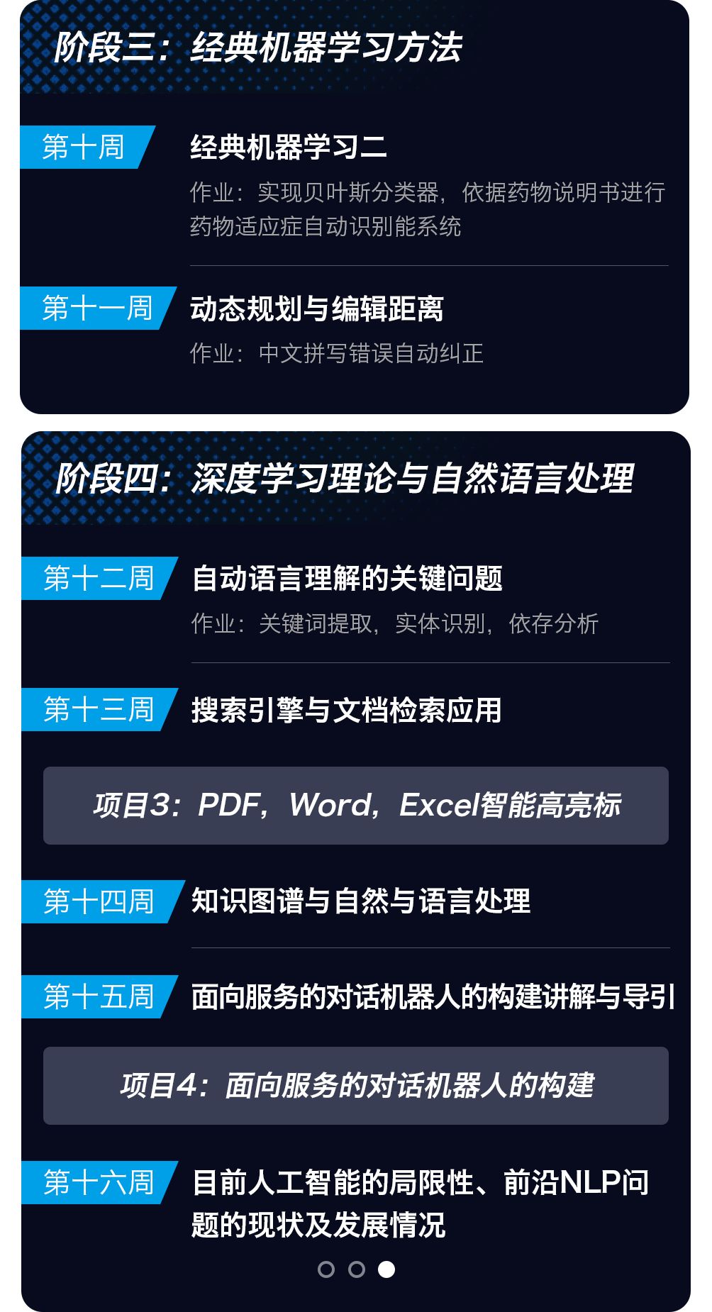 目前很多AI培训,往往过分关注深度学习等最新的“时尚”知识,但是实际产业中,除了深度学习之外,其他的很多经典方法依然是长期使用的,本课程跟随 AI 的发展脉络,带领大家对 AI 与 NLP/CV/RS 知识建立一个较为完备的知识脉络。这样才能在一波一波的技术革新中立于不败之地。
