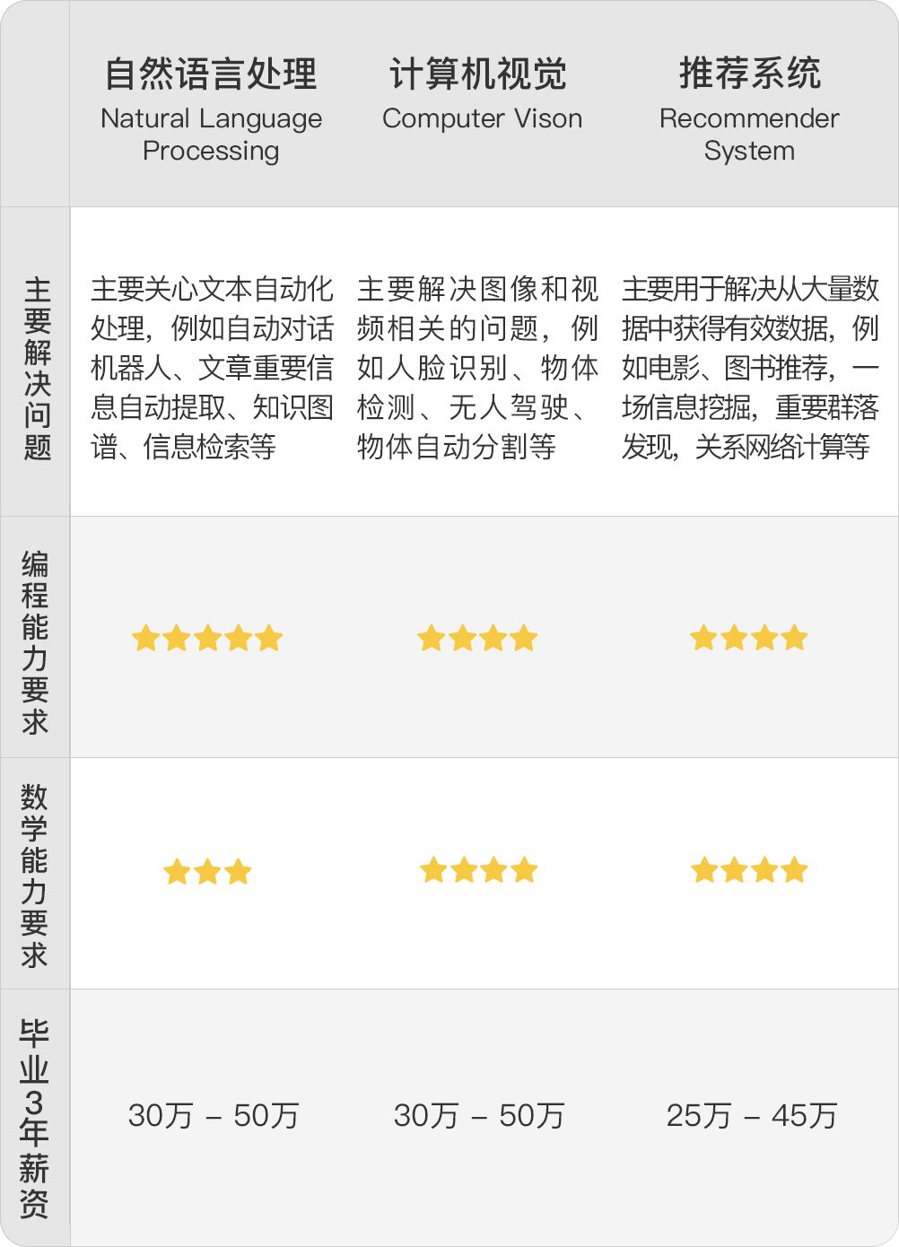 三个主修方向的选择建议