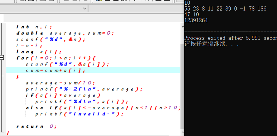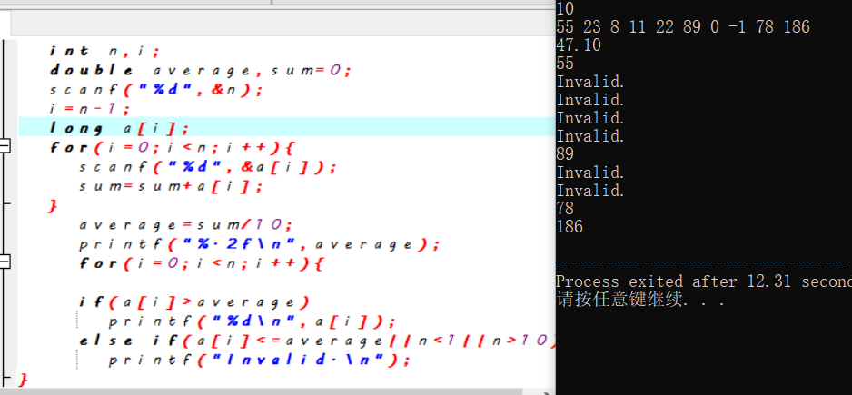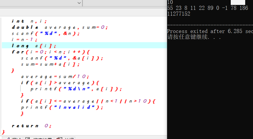 输出的值是对的,但是不应该输出Invalid.然后我发现它的输出条件错误,同学又告诉我输入int a[n]不是a[i],我对这些地方进行了改正