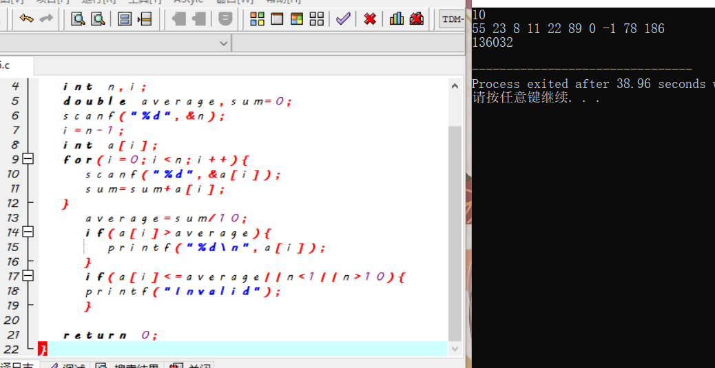 4.比平均数大的a[i]输出,小于等于平均数不输出