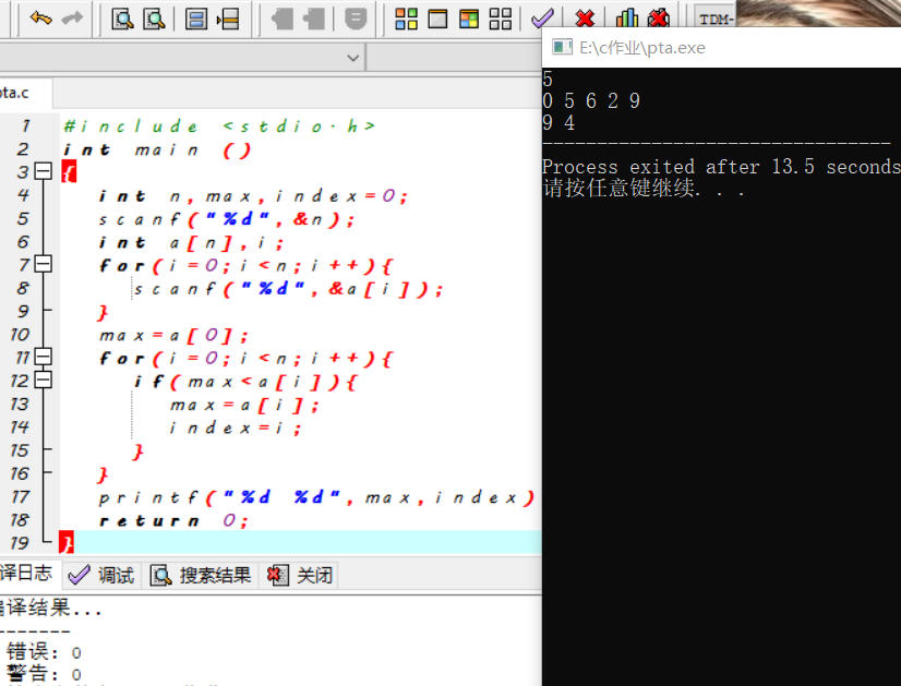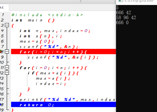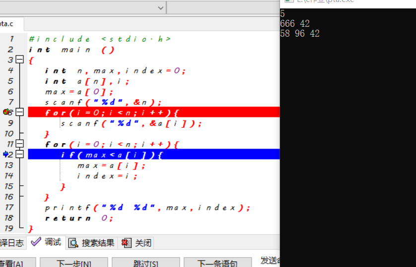 运行结果是正确的,在PTA上却报错,然后我在循环处设置了断点
