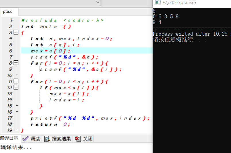 3.如果max<a[i],max=a[i],同时index=i依次循环
