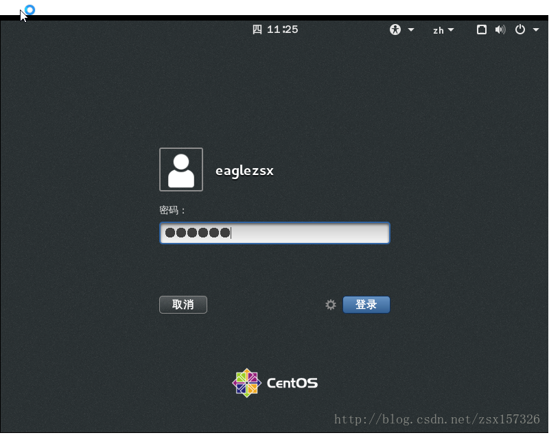 点击eaglezsx并输入密码,最终进入图形化界面。然后它会弹出一个欢迎界面,让我们设置键盘,语言等信息。直接点击右上角的“前进”–>“前进”–>“跳过”按钮,最终会弹出一切都已就绪页面,点击开始使用CentOS Linux(s)。之后就可以使用CentOS的桌面版了。