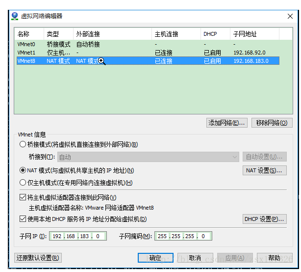 查看VMware NAT网络模式的网段是多少。点击VMware虚拟机左上角菜单栏的“编辑”,选择“虚拟网络编辑器”。